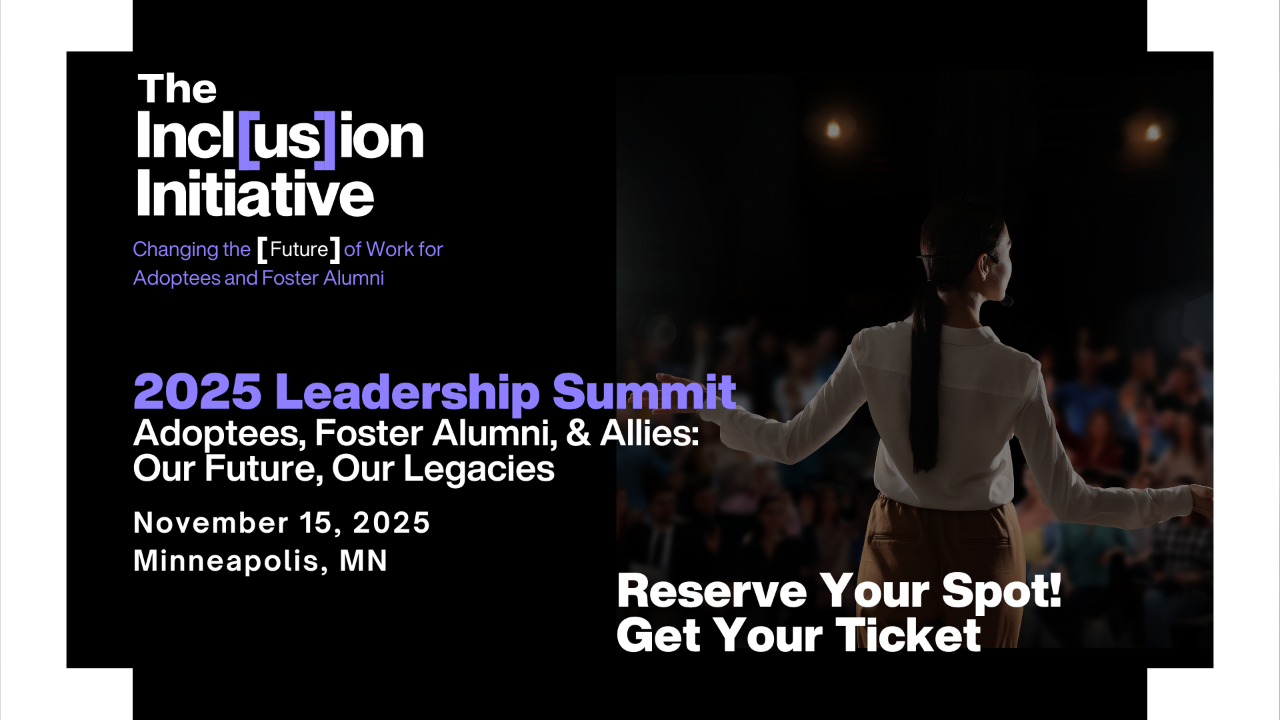 In the meantime, we hope to see you at the Inclusion Initiative's first ever Leadership Summit for Fosters, Adoptees, and Allies on November 15th in Minneapolis! Tickets and scholarships are available until they run out. You'll see our staff there, and save the date for our Foster Advocates' Winter Celebration on December 6th.