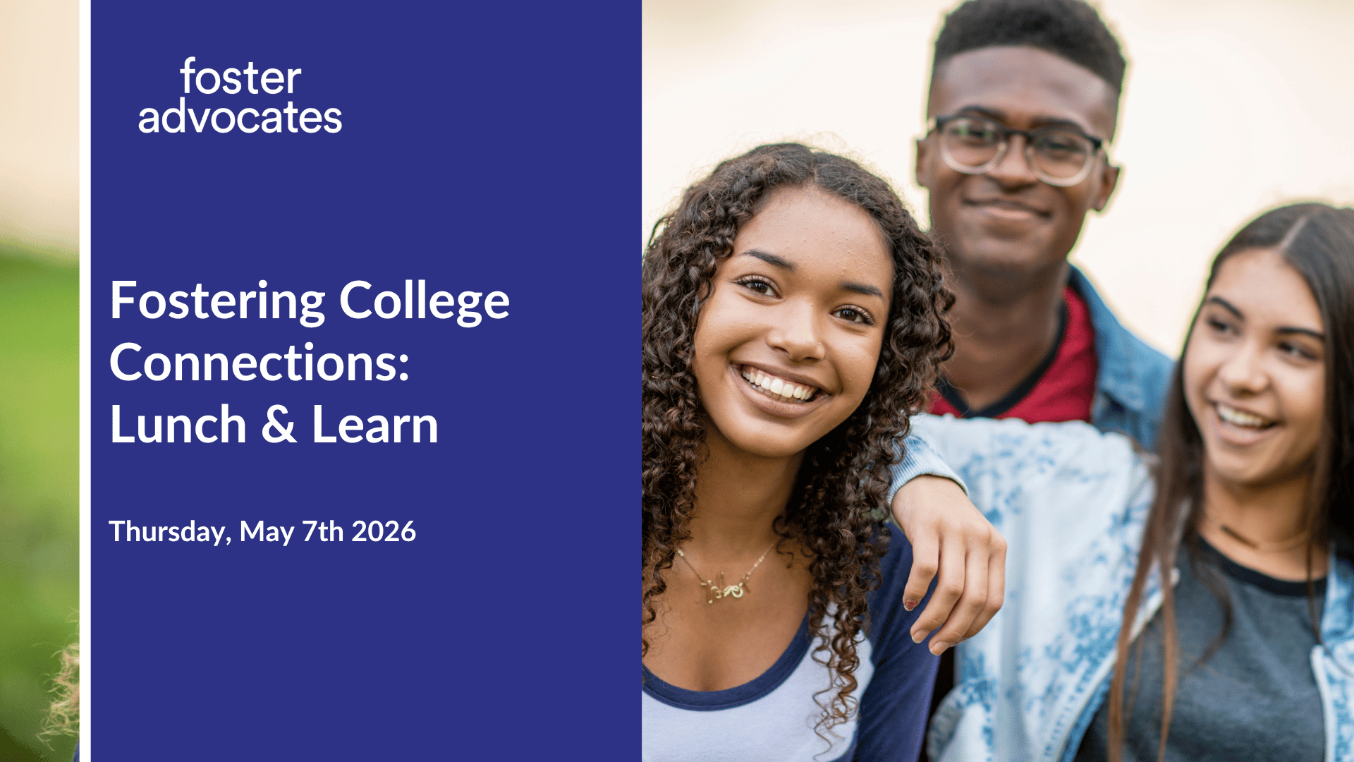 How can colleges better support students with foster care experience? Join our May 7 Lunch and Learn.